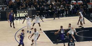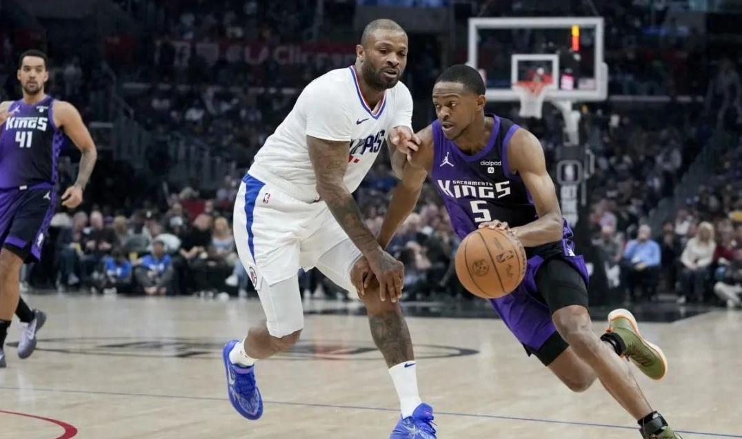 国王的第六人蒙克在比赛最后阶段连续得分,其中一次是和小萨博尼斯的挡拆配合,快船的防守完全被打散,让蒙克轻松投篮。