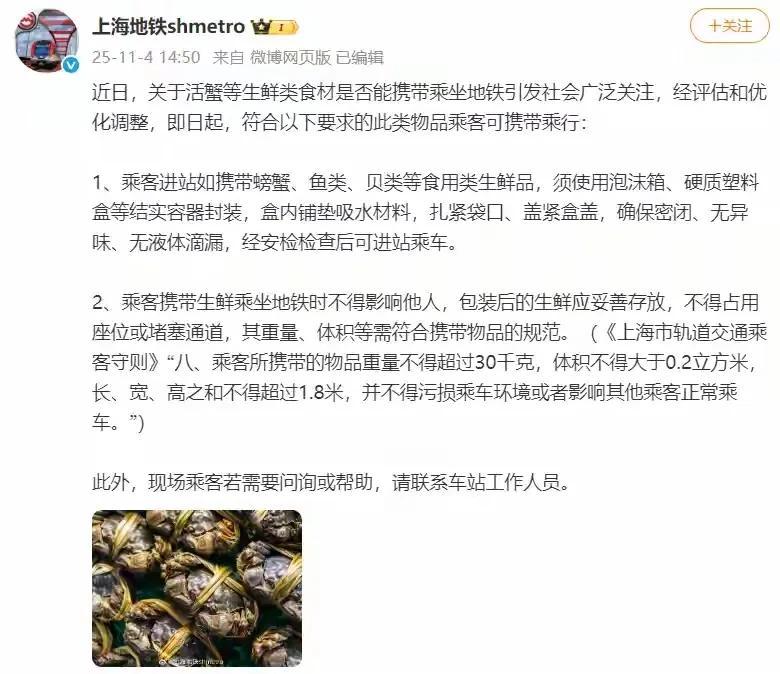 地铁曾发文明确:生鲜食品可以携带,但需妥善包装,避免渗漏、散发异味。