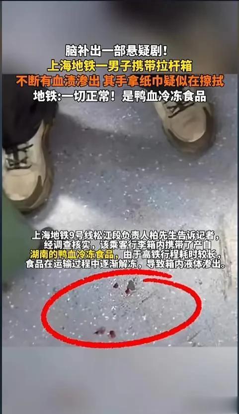 咱们吃瓜群众呢,以后看见地铁上有人箱子渗水,先别慌,可能只是人家带了一箱鸭血。