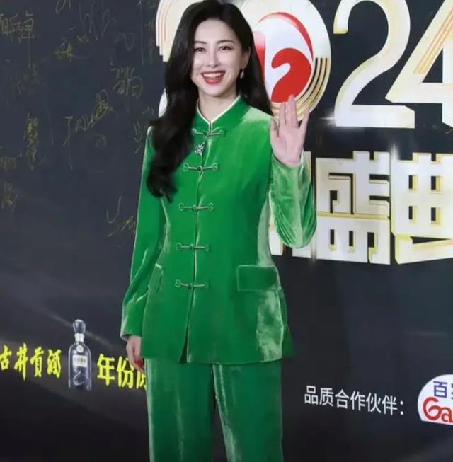 在众多西式礼服中,朱珠的造型无疑是最与众不同的,她选择了一套绿色的唐装,将中国传统服饰的美与现代时尚完美融合。