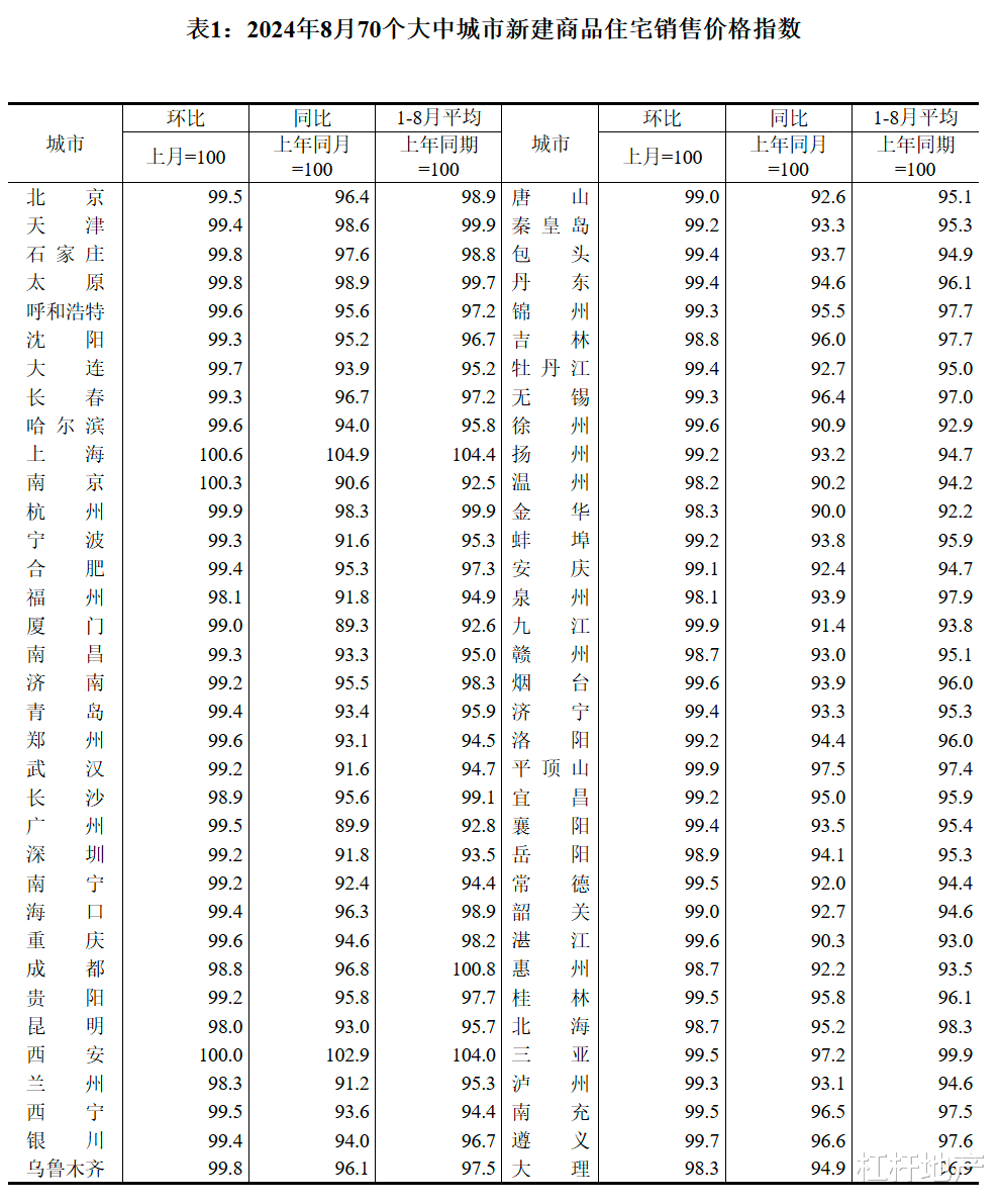 70个大中城市中,除了上海、南京、西安外,67个城市的新房价格低于上月;除上海、西安外,68个城市的新房价格低于去年同期。自2021年9月70城新建商品住宅房价环比下跌,到2024年8月已经连续下跌36个月。