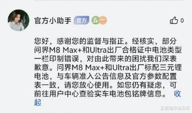 这次问界M8的电池事件,表面上看是一次“印错”,实则是一次信任危机。消费者花真金白银买车,换来的却是虚假宣传和质量问题,这搁谁身上都不能忍。希望问界品牌能够真正重视起来,拿出诚意解决问题,而不是用一句“印错”来敷衍了事。信任一旦失去,想要重建,可就难上加难了。