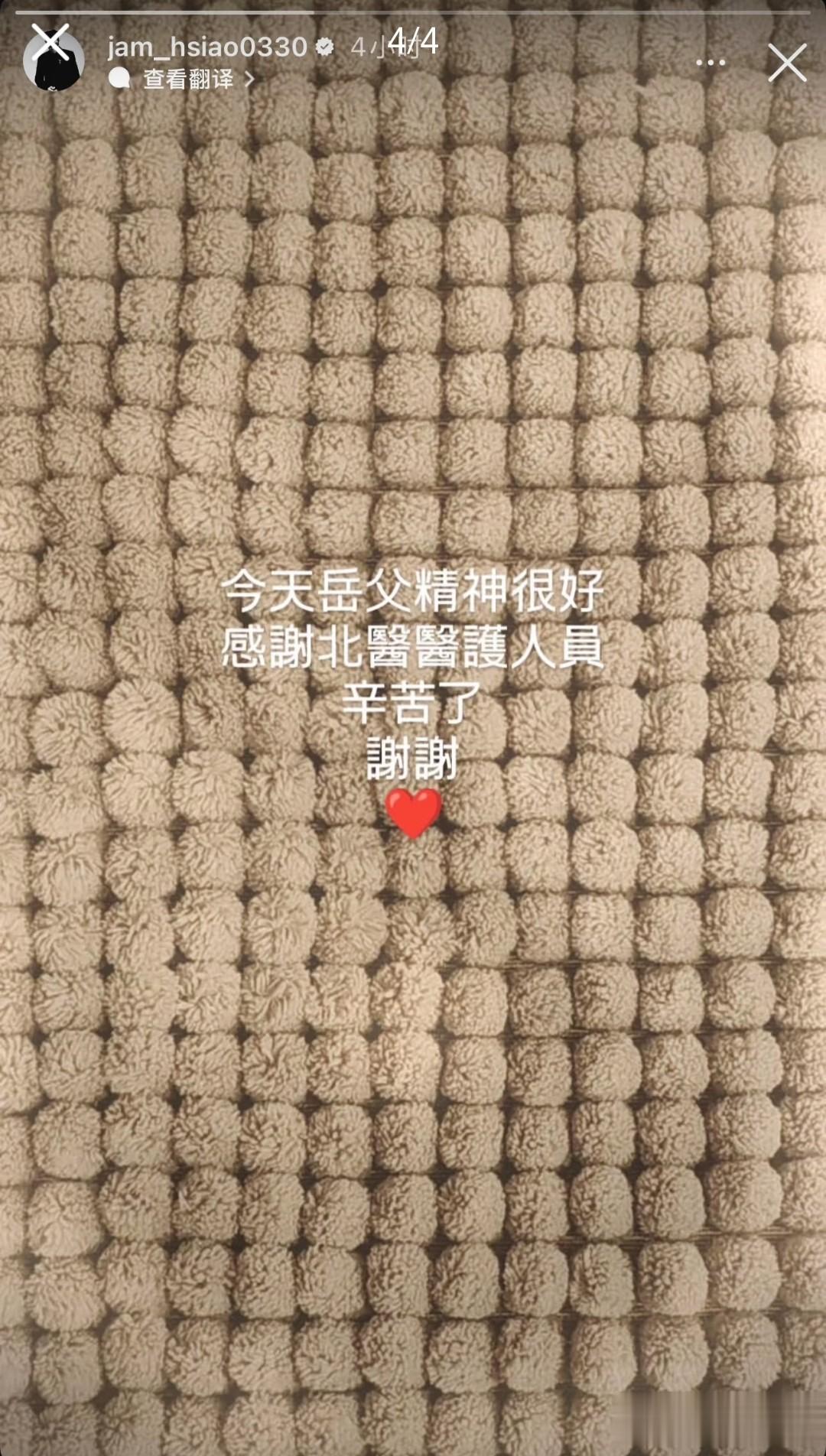 隔了一天,林有慧和萧敬腾双双在社交平台报平安,也透露父亲是因为肺部细菌感染入院,萧敬腾那时还表示岳父精神很好。