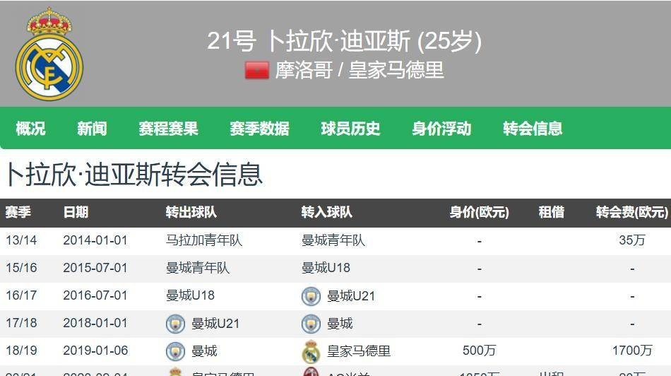 迪亚斯出身于曼城的青训体系,2019年1月以1700万欧元的转会费加盟皇马。在皇马效力期间,他多次被租借到意甲的AC米兰踢球,并在2023年7月回归了皇马。回顾迪亚斯的职业生涯,他在曼城的表现为15场比赛打入2球,没有助攻;而在AC米兰期间,他共计出战124场,贡献了18粒进球和15次助攻。至于他在皇马的表现,迪亚斯在121场比赛中打入20球,并有20次助攻,堪称多面手。