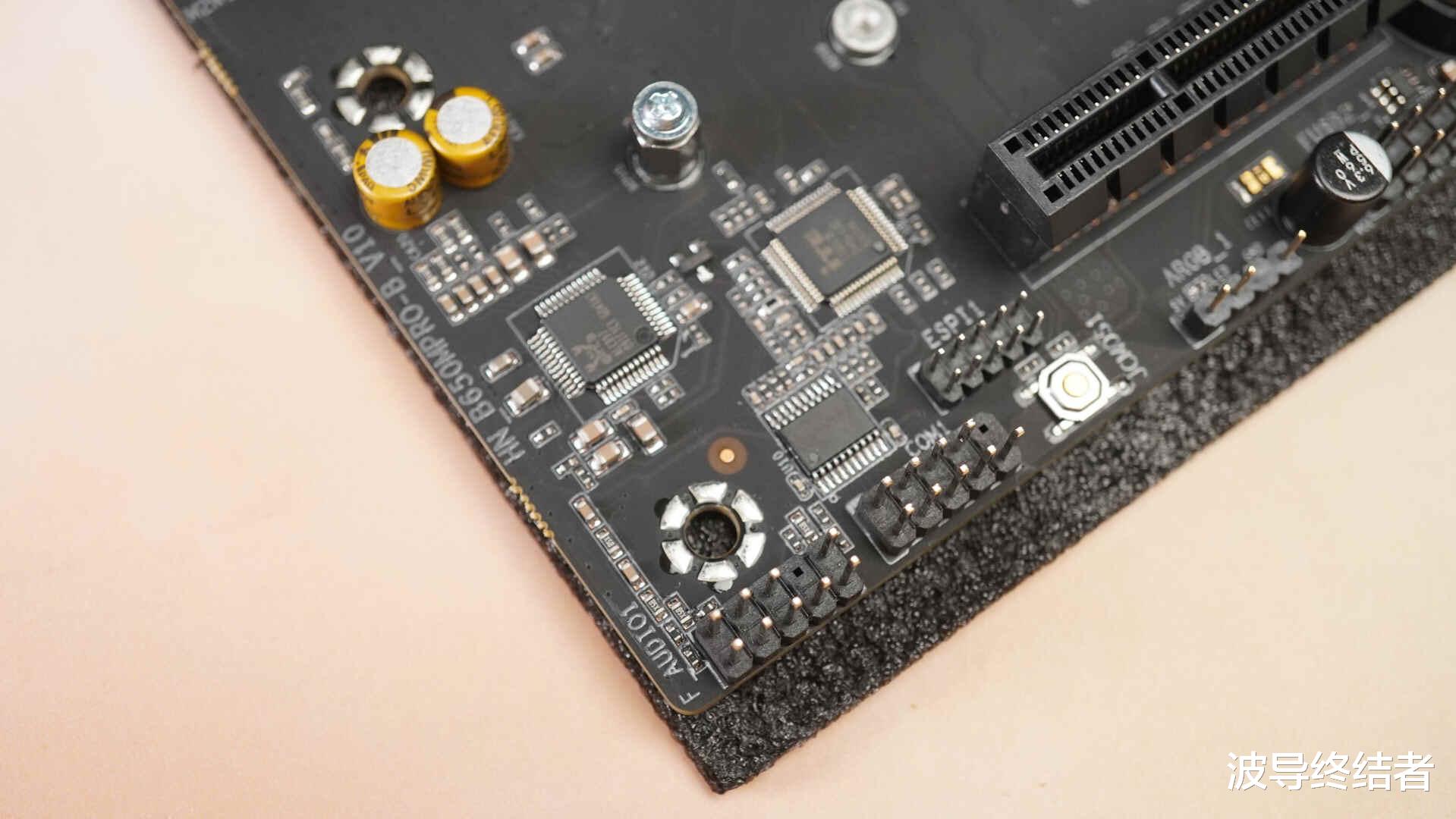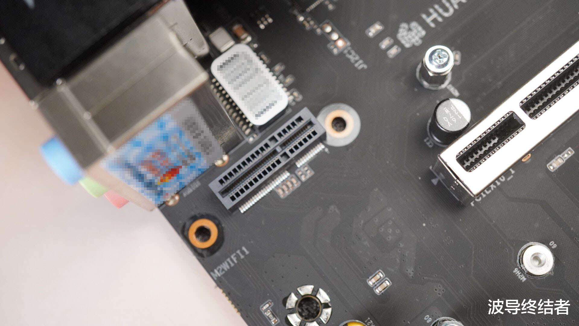 在档板最下面,还有个M.2网卡的插槽,这个设计挺好的,一来好安装,二来不用担心叠叠乐的热量问题。当然,性价比板子没有标配无线网卡,自己配一个就是了。