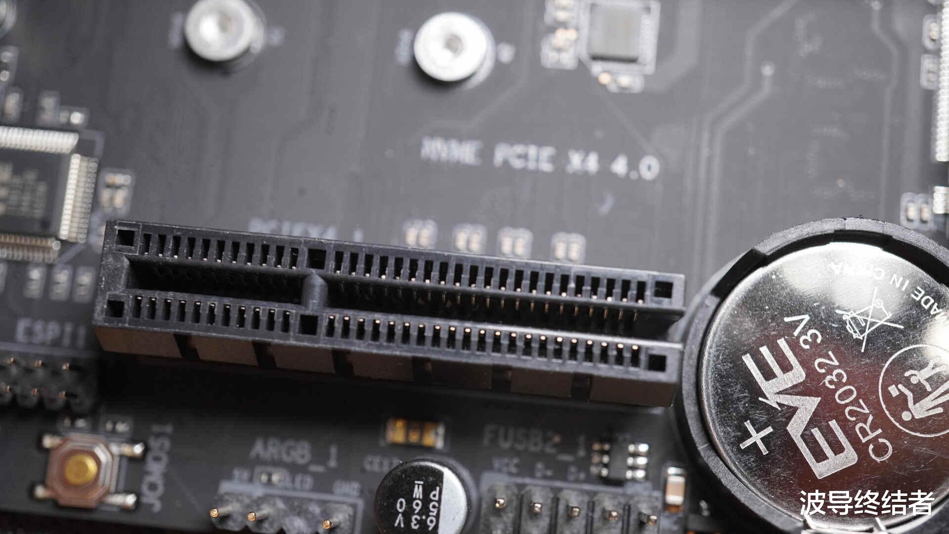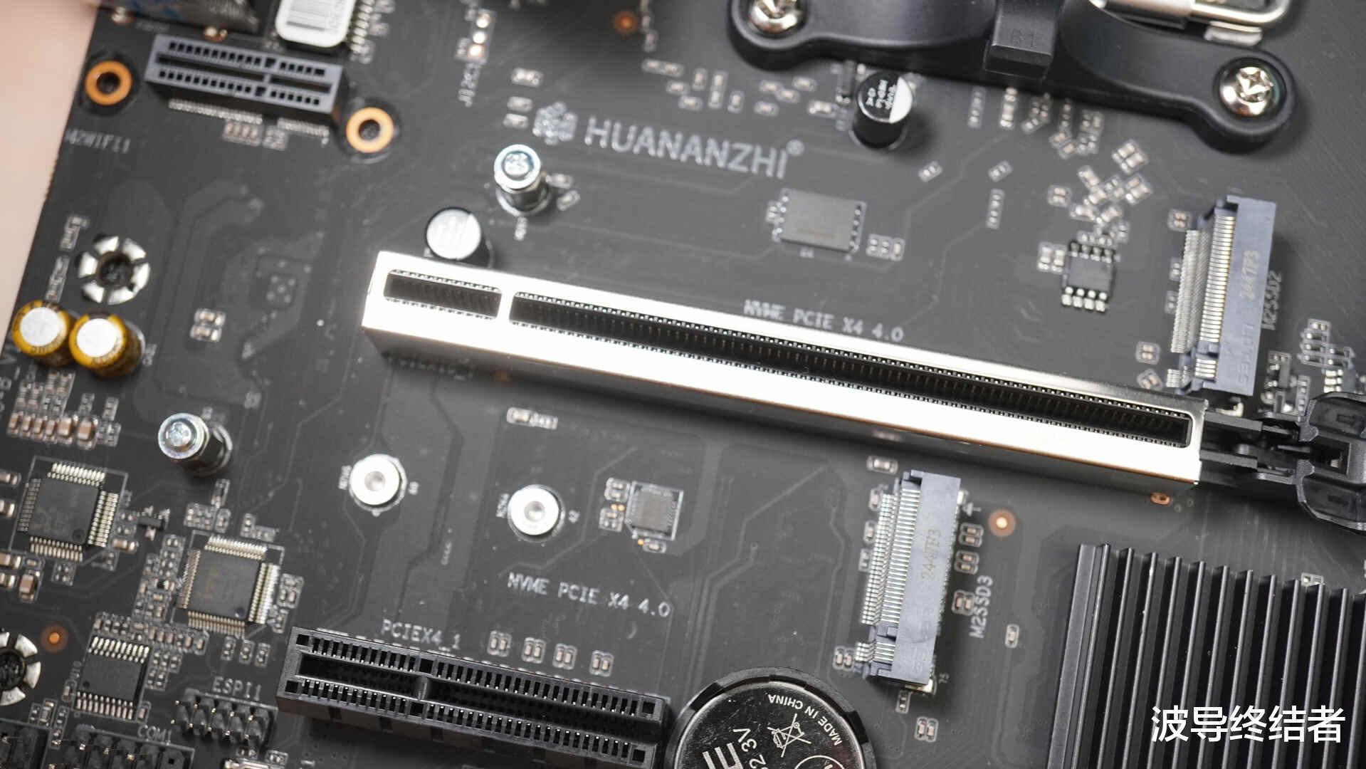 另外还有一个PCIe 4.0 x4的开放式插槽,有的卡槽长8或者16但是实际金手指和带宽只有x4的,就可以插在这上面。