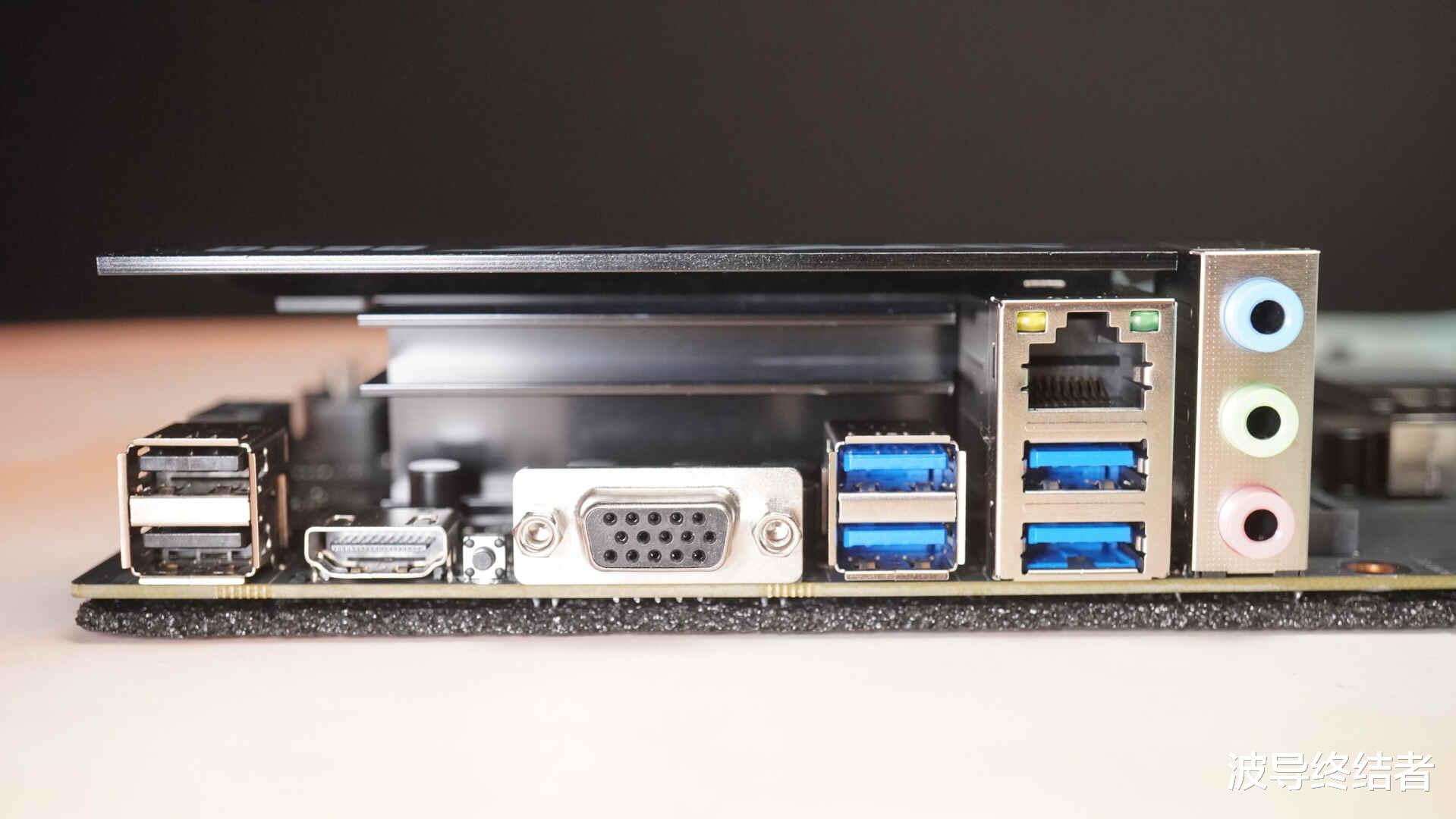 背板接口方面,2个USB2.0接口,平时接键鼠外设最好用。另外还有4个USB 5Gbps接口,集成网卡、声卡等。显示接口方面,一个HDMI,一个VGA,再加上有COM口,上带集显的U拿来做办公或者工控机也是比较方便的。