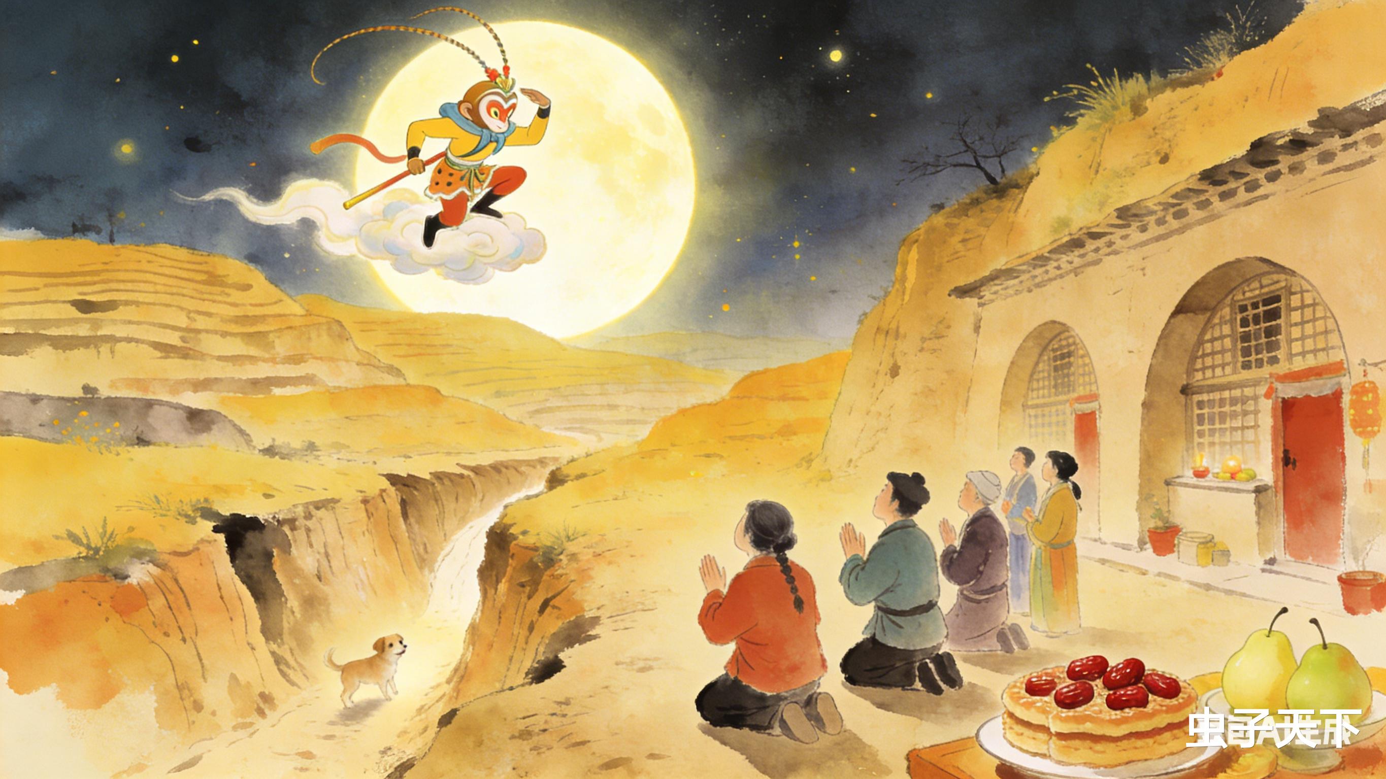 老人们总念叨,当年孙悟空大闹天宫,哮天犬追着他咬,把月亮都啃出个豁口,这才有了“天狗食月”的说法。
