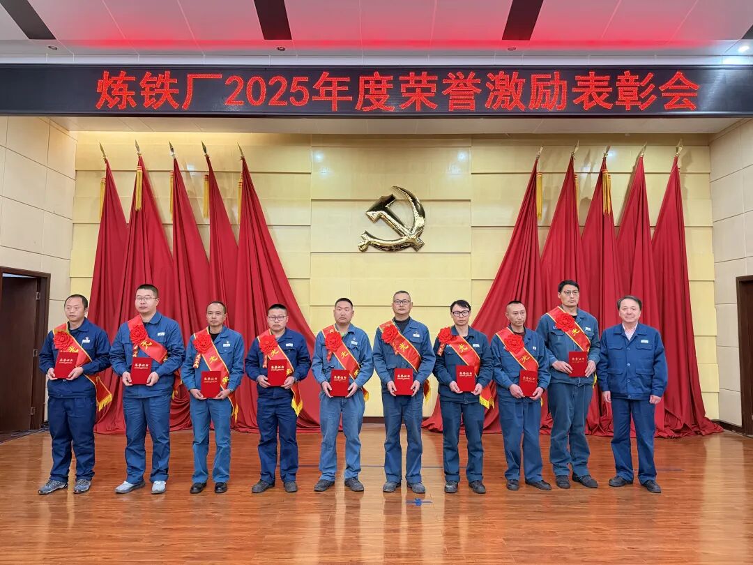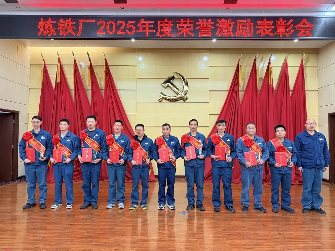 会议对获得炼铁厂2025年度劳动标兵、优秀员工、炼铁工匠和高炉炼铁工竞赛决赛获奖选手代表进行了表彰颁奖。