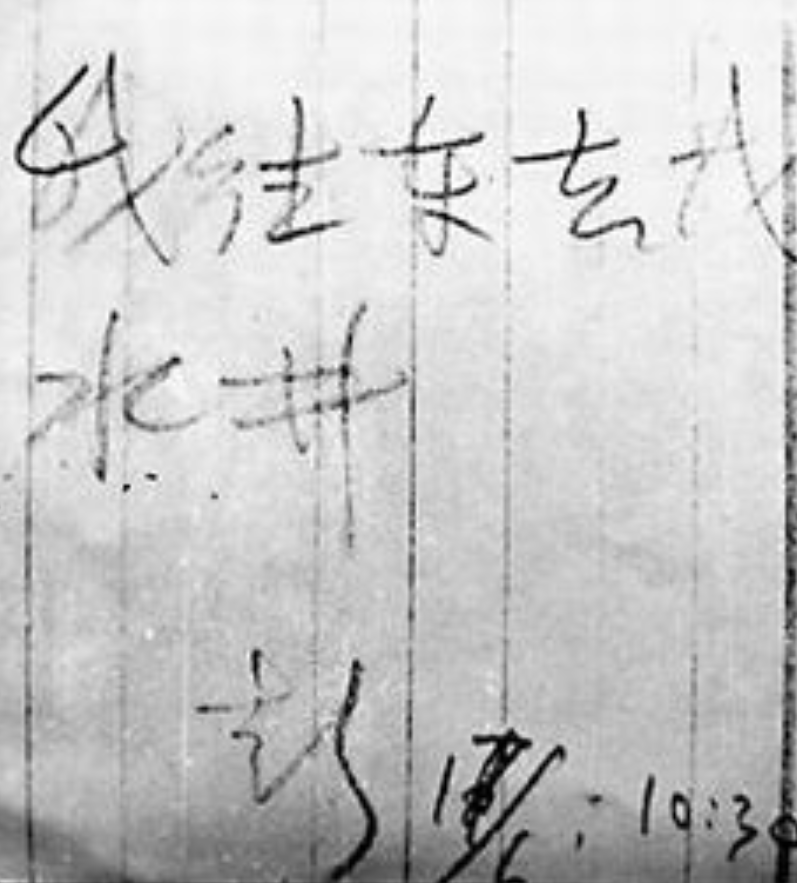 就在科考队员将接收到的复电拿给彭佳木看的时候,却发现彭佳木已经不知所踪,只留下一张字条,上边写着“我往东去找水井”,落款上还有一个彭字和具体的日期。