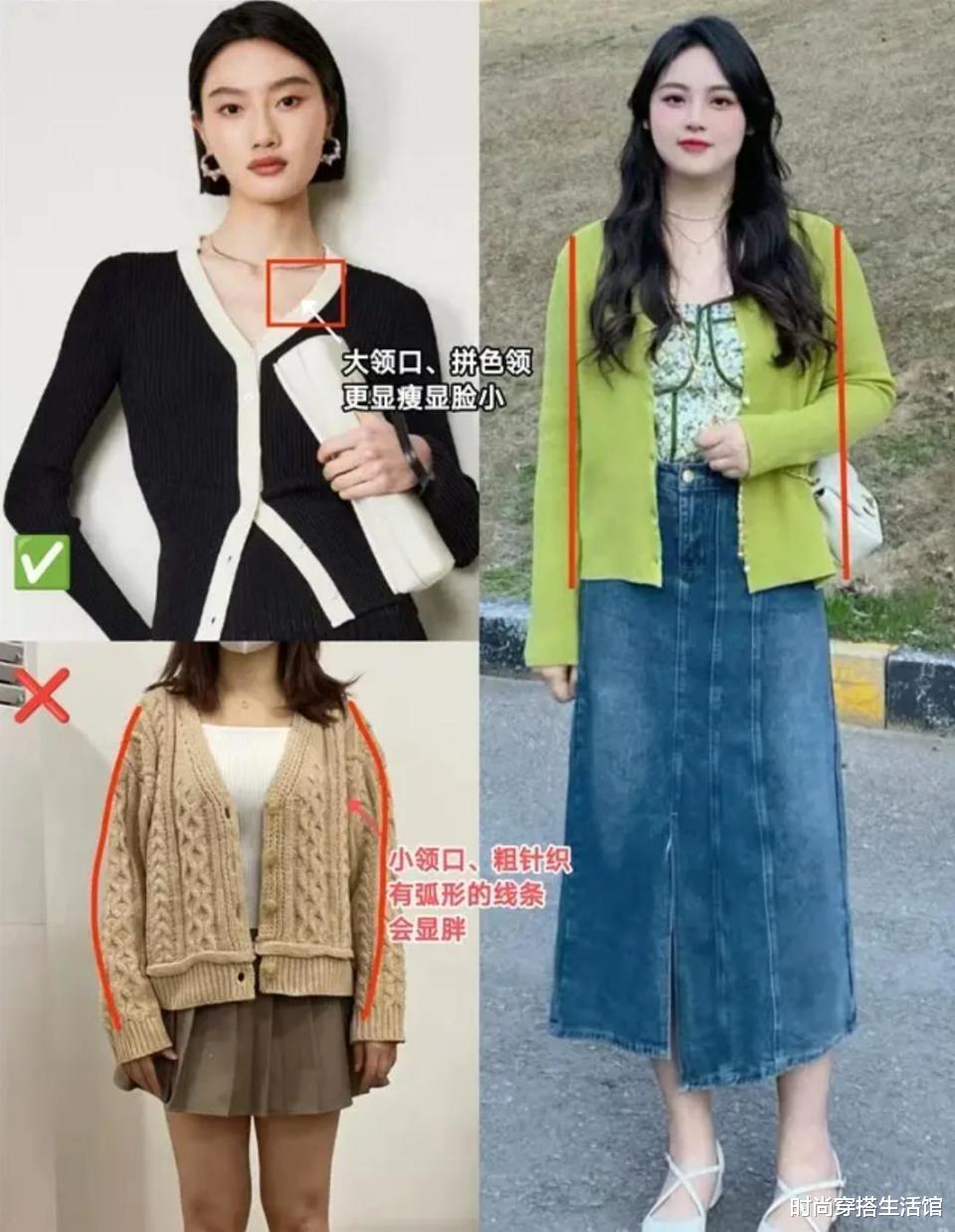 春天的“奶奶开衫”确实是比卫衣时髦,但是并不是说我们只要买了奶奶开衫就可以不依靠技巧就能穿得很时髦,比如像是上面这组搭配对比就超明显。对于会打扮和不会打扮的女人,奶奶开衫的演绎风格差异还是极大的,如果不想成为无效穿搭模版的话,那么我们还需要看奶奶开衫的挑选细节和技巧。
