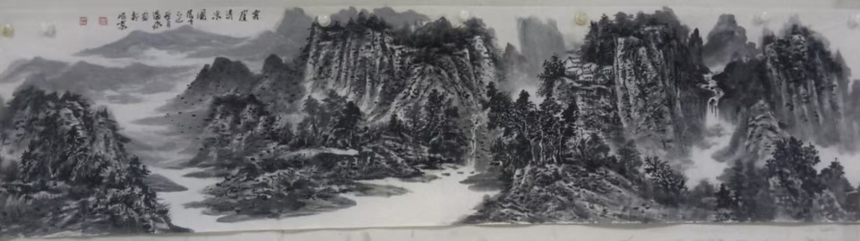 其画风雄浑深厚,苍劲自然为同时代画家中的佼佼者。曾多次举办画展中央,北京,山东等电视台及各大报刊多次报导和专访。
