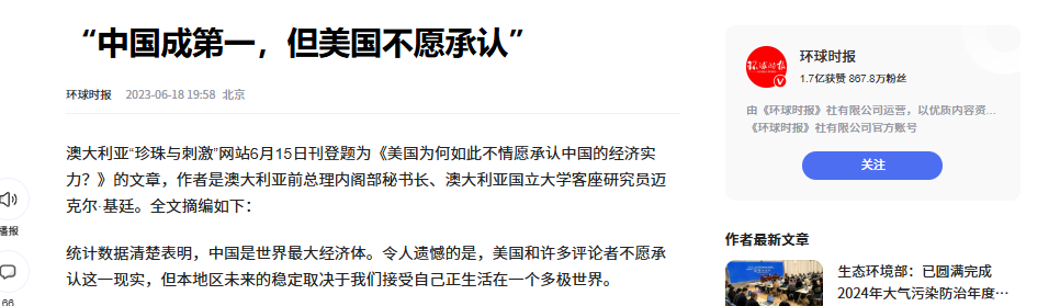 就在前段时间,美国的主流媒体《纽约时报》公开承认,说美国的GDP已经落后中国,中国才是世界第一大经济体。