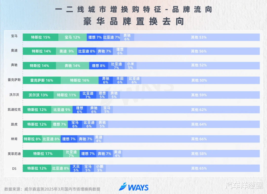 最近,威尔森出了一份国内一二线城市的车主增换购特征报告,显示了不同汽车品牌车主,在增换购时的流向和来源,体现了各大品牌的车主忠诚度。其中,传统豪华品牌和新势力的结果,可以用出乎意料来形容。