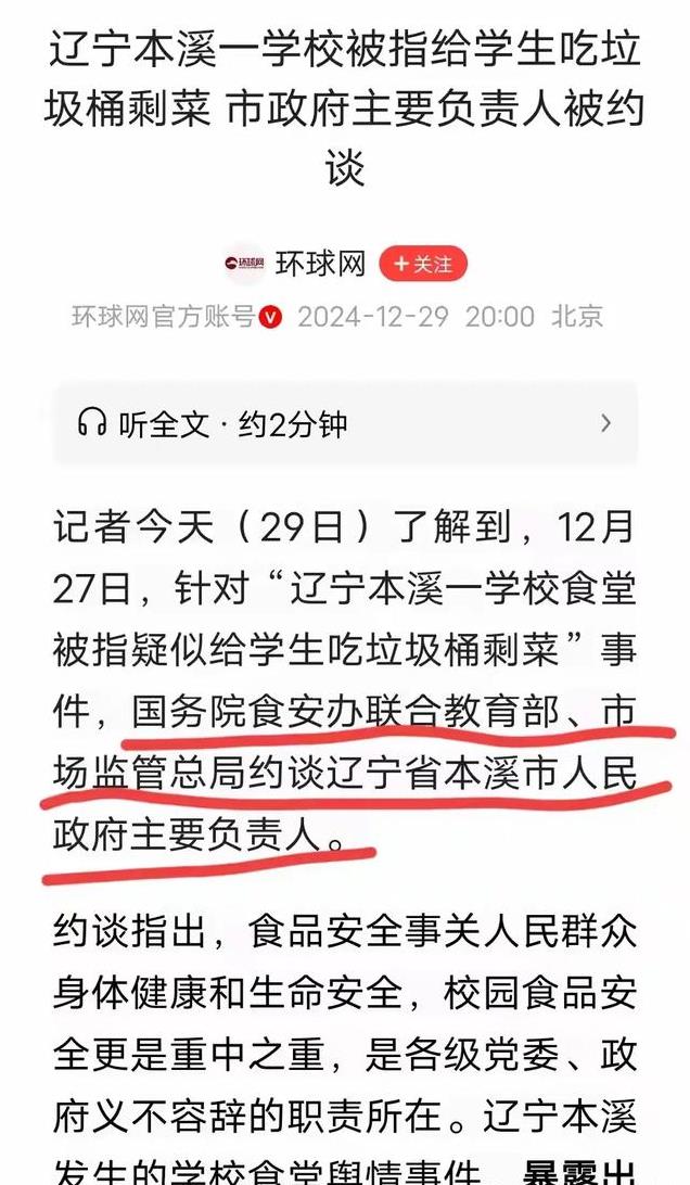 万万没想到,辽宁本溪五里甸子学校给学生吃剩菜这事竟然惊动了国务院食安办,本溪市人民政府主要负责人被约谈。