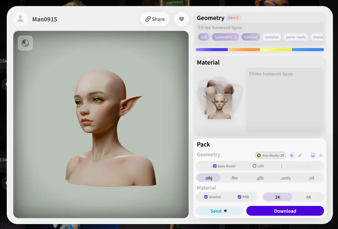 此前接入国内某大DAU的UGC游戏的模型“Zero”,就面向移动端开发,它生成的模型面数更低,性能较好,适合手游UGC快速生成的场景。