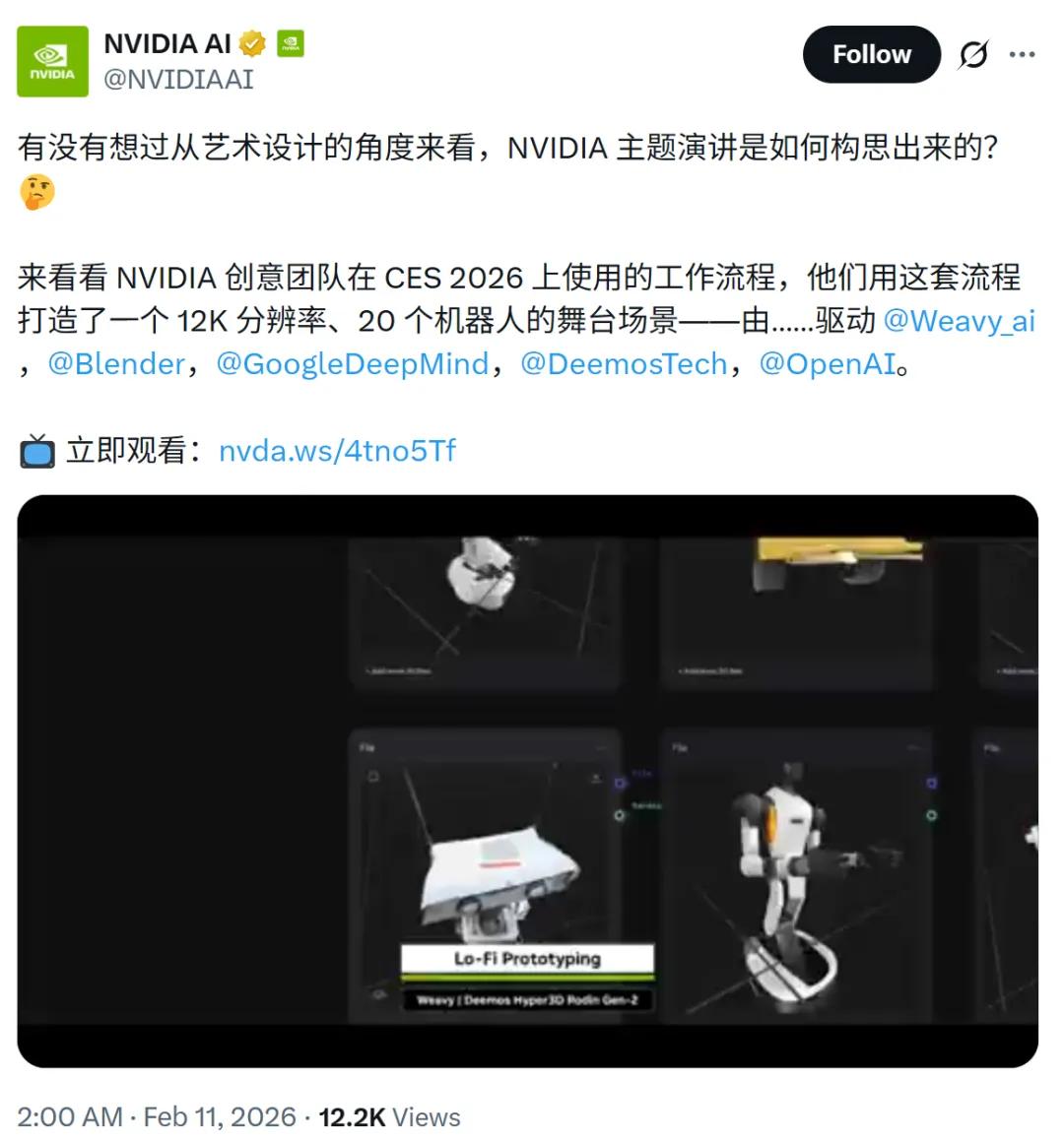 就在GDC前一个月,英伟达官方公开了CES演讲背后的AI工作流,其中核心的3D生成环节,用的正是Hyper3D。