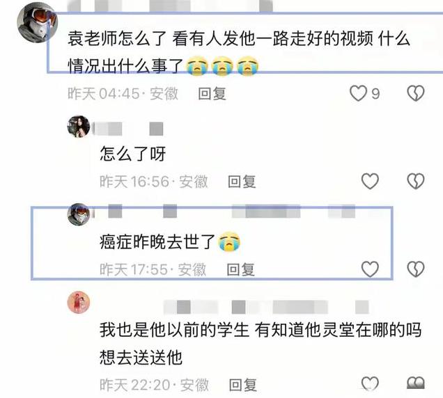 从评论区留言可知,袁宁老师去世的消息对于他的很多学生来说都是很突然的,尤其是刚刚从阜阳五中毕业的学生更是如此,他们前段时间还跟袁宁老师有接触,有学生暑假报志愿还曾连线他询问他的意见。