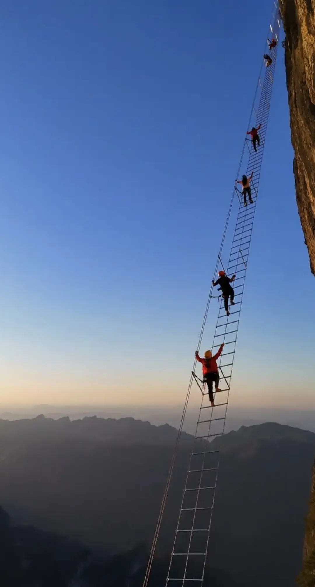 对于那些患有恐高症或者心理素质稍差的人来说,光是站在天梯旁边可能就已经觉得头晕目眩了,更别提要去完成这长达3小时的攀爬之旅。