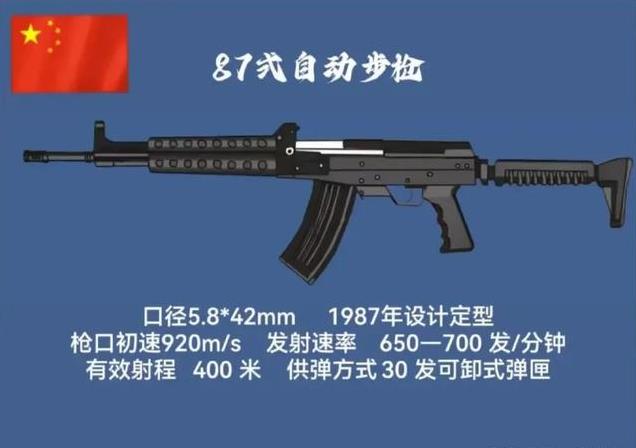 87式自动步枪是中国自行研制的第一代小口径步枪,与87式5.8mm班用机枪、87式5.8mm普通弹统称为87式5.8mm班用枪族武器系统。它在1987年设计定型,因此得名87式。