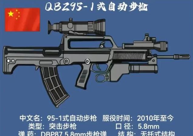 QBZ95-1式自动步枪是95式枪族的最新改进型,解决了95式枪族装备部队后暴露出的多项问题,具有更高的通用性和可靠性。作为中国人民解放军的制式步枪之一,广泛装备于各个部队。