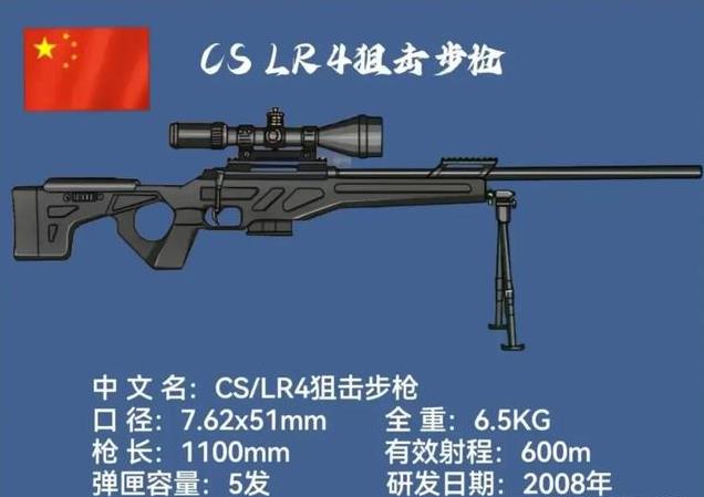 CSLR4型7.62mm高精度狙击步枪系统,具有重大突破意义,无论从外形还是人机工效都进行了优化,提高了射击精度。作为高精度狙击武器,装备于特种部队和狙击手。