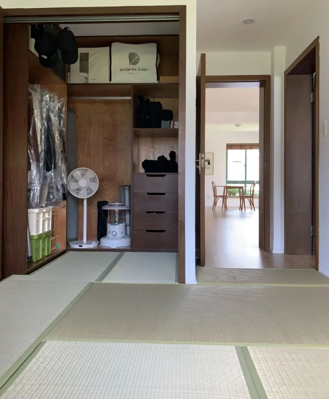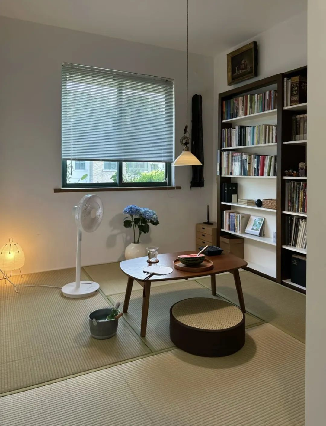 草席铺地,茶几轻放,这里便是屋主静心工作的场所;而当客人来访时,只需铺上被子,便能化身为舒适的客房。