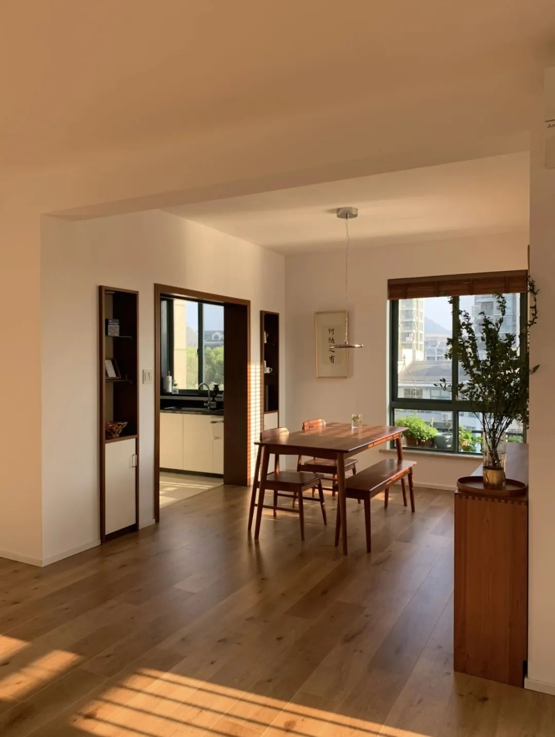 这里没有冗余的家具,没有繁杂的装饰,只有窗外绿树投下的斑驳光影,和屋内简洁线条勾勒出的宁静空间。