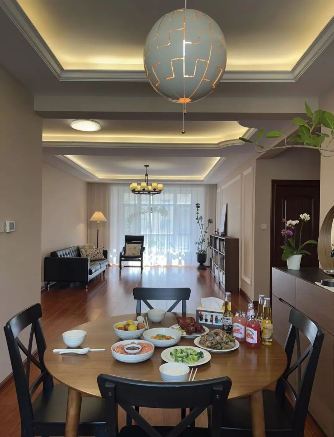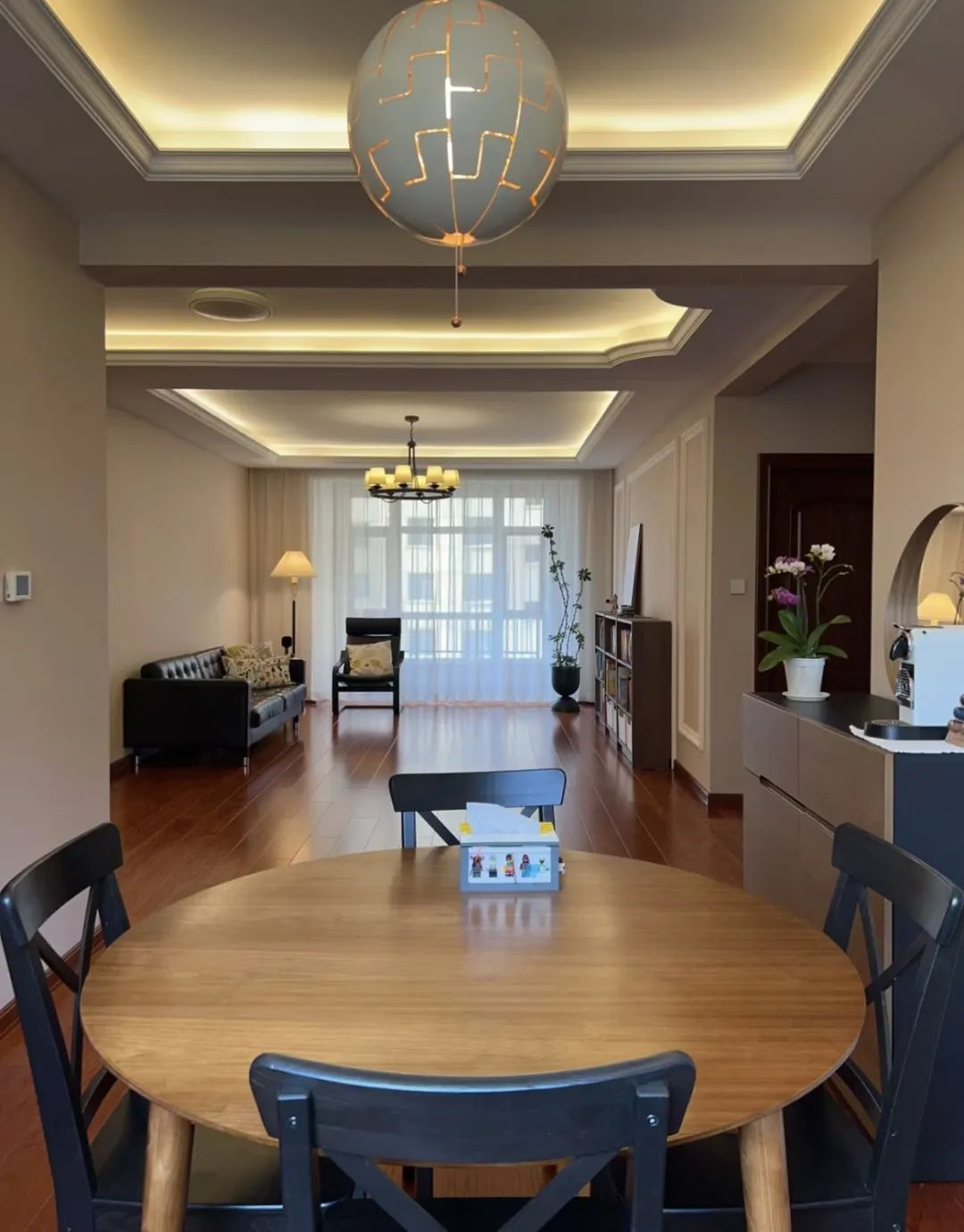 当我们踏入第一个屋主的家中,首先映入眼帘的便是那空灵宽敞的客厅。