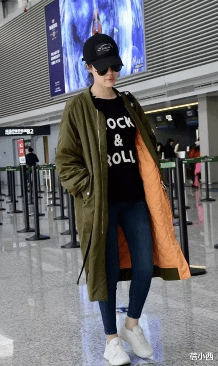 田朴珺的日常搭配一直都很松弛,比如这一身机场搭配,她上身的蓝色牛仔外套无疑是这套造型的核心单品,版型宽松,给人一种休闲自在的感觉,可以恰到好处地营造出当下流行的“男友风”氛围。蓝色调清新自然,泛着微微的复古质感,再搭配紧身小黑裤和运动鞋,看起来活力四射。
