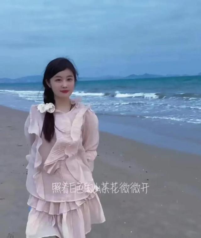 她侧身对着镜头,虽然眼睛努力睁大并且勾着嘴角,但还是给人一种“强颜欢笑”的感觉。