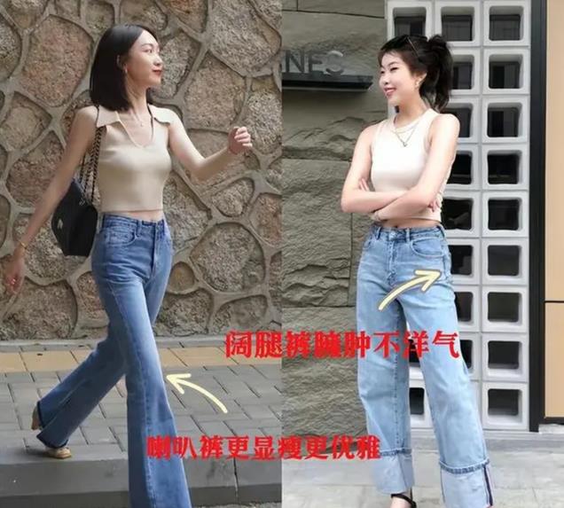 1、喇叭裤,展现出纤细的腿部线条