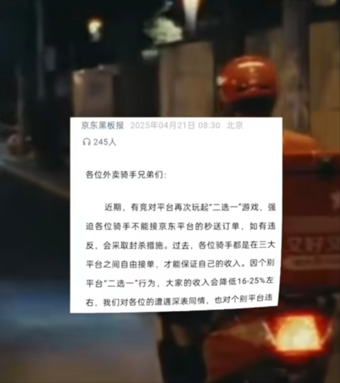 外卖江湖这几年比武侠小说还热闹,平台们为了抢地盘,补贴战、红包雨轮番上阵,连骑手小哥的电动车都快蹬出火星子了。可2025年开春就上演了一出魔幻剧情——某平台搞“拉黑式竞争”,逼着骑手在京东和其他家之间“选边站”。结果京东的订单卡在半路,用户饿得前胸贴后背,骑手被平台掐着脖子两头受气。这架势,让人想起菜市场大妈吵架时那句“断人财路如杀人父母”,京东反手就甩出个“超时免单”的炸弹。但明眼人都犯嘀咕:这年头,光靠烧钱能烧出条活路?