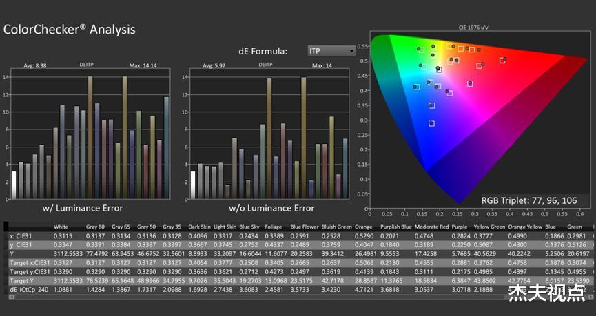 之所以这么说,是因为我们在测试中发现,所有RGB-Mini LED电视存在着色彩飘移的问题,我们在刚开机做的测试数据,和我们在开机半小时后的数据完全不同。而开机半小时的测试数据,和我们开机一小时后的测试数据又有区别。我们在不同开机时间段测试的SDR色准,最低时能做到平均ΔE1.7,而最高时则飙到了平均ΔE6以上,所以我们认为这些测试数据已经不能代表电视的实际画面表现,自然也就没有展示意义了。