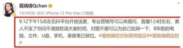 网友们纷纷质疑,为何葛晓倩选择在8年后才将这些陈年旧事公之于众?毕竟,张雨绮与袁巴元的婚姻早已成为过去式,两人离婚也已6年有余。对此,葛晓倩在直播中给出了自己的解释。她透露,自己并非不想早些时候揭露真相,而是出于种种压力和顾虑,一直未能发声。她表示,当时的情况让她措手不及,一切发生得太快,她甚至没有机会做出任何准备。在她还未来得及反应之际,便有人直接向她的上级领导施压,警告她若在网上乱说话,将面临严重的后果。