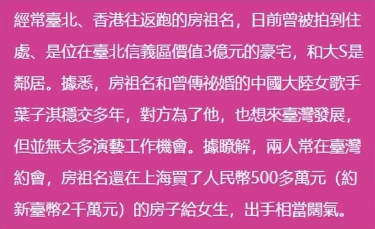 退圈这么多年他过得很好。这些年,他一直生活在香港和台湾,两个地方来回跑。成龙大哥是香港人,而他妈妈林凤娇是中国台湾人,房祖名刚出道时,也是拜师李宗盛,在台北生活过很长时间,这两个地方他都很熟悉,不过他在台北生活的时间更长一点。