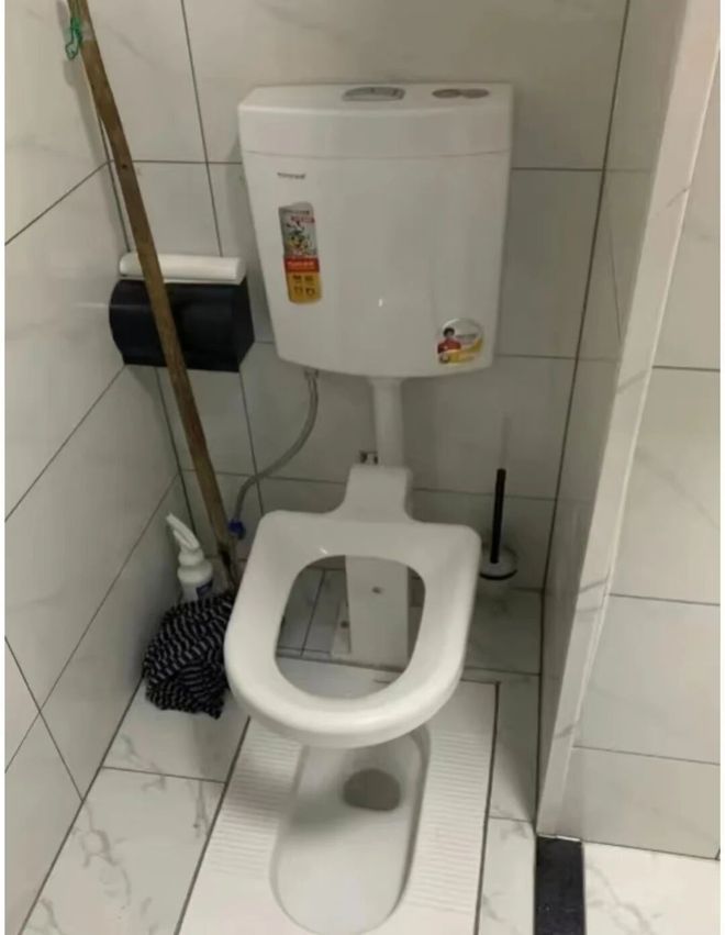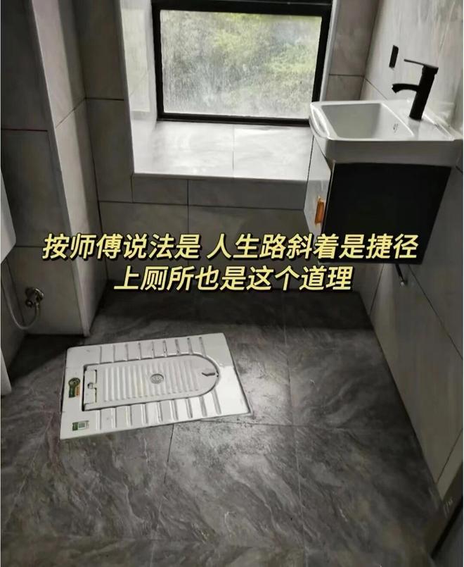网友@瓜瓜:我家公卫的蹲坑,看过的人都问我为什么要斜着装,我只能笑笑说“瓦工说的,人生的路斜着是捷径,上厕所也是如此,斜着更容易上出来”,无语吧,确实挺无语的。