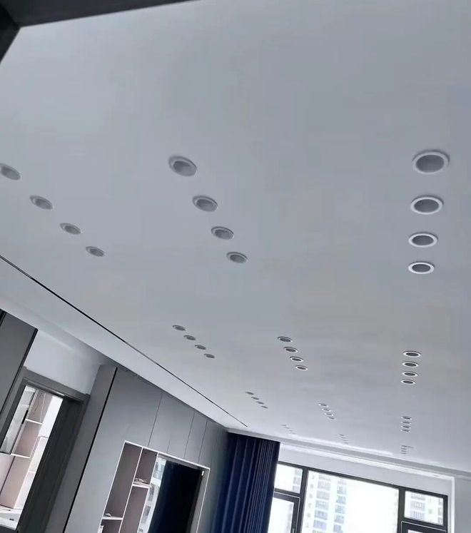 网友@打开手机:现在不都是流行无主灯设计吗,我父母装的房子也做了无主灯,看看这效果,确实没有主灯,这怕不是被卖灯的忽悠了吧,谁家客厅装几十个灯啊。