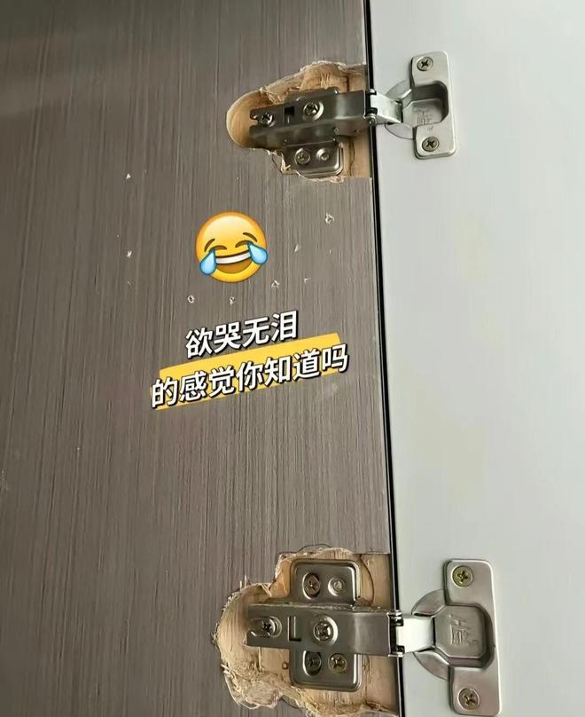 网友@花枝:你知道什么叫欲哭无泪吗,就是当我打开我家柜门看到这一幕的时候,谁家柜子安装时还要给铰链掏个洞啊,这是几个意思啊?