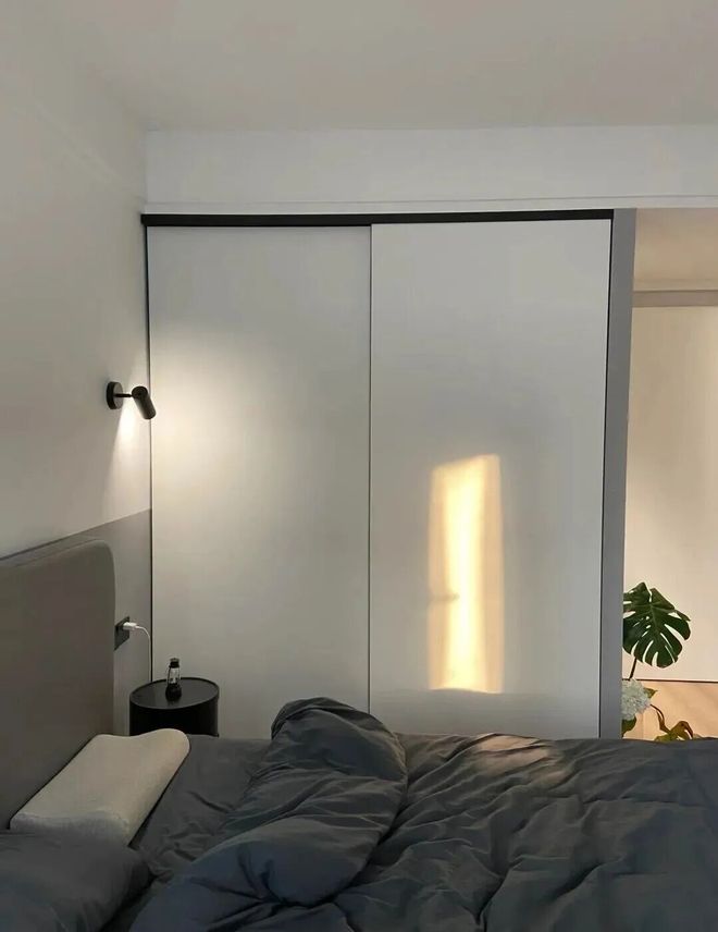 所以,在卧室开间比较小的情况下,完全可以考虑衣柜推拉门设计,既美观又省空间。
