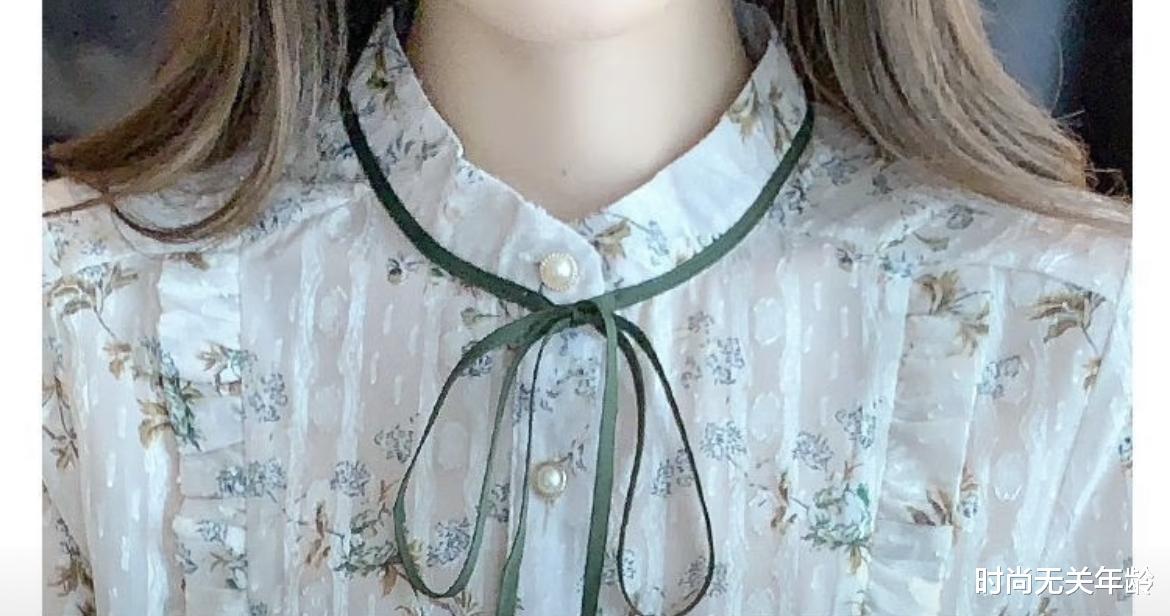 衬衫上深绿、卡其、奶油白的大地色的应用更是突显了秋天的氛围感。荷叶边及领口的系带设计让这件衬衫柔美的同时多了几分浪漫与灵动,不经意间便勾勒出女性的优雅轮廓。
