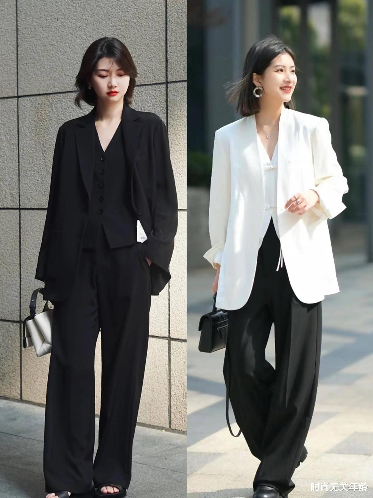 然而为了避免职业装的感觉,两个单品选择最好都要有点设计感。