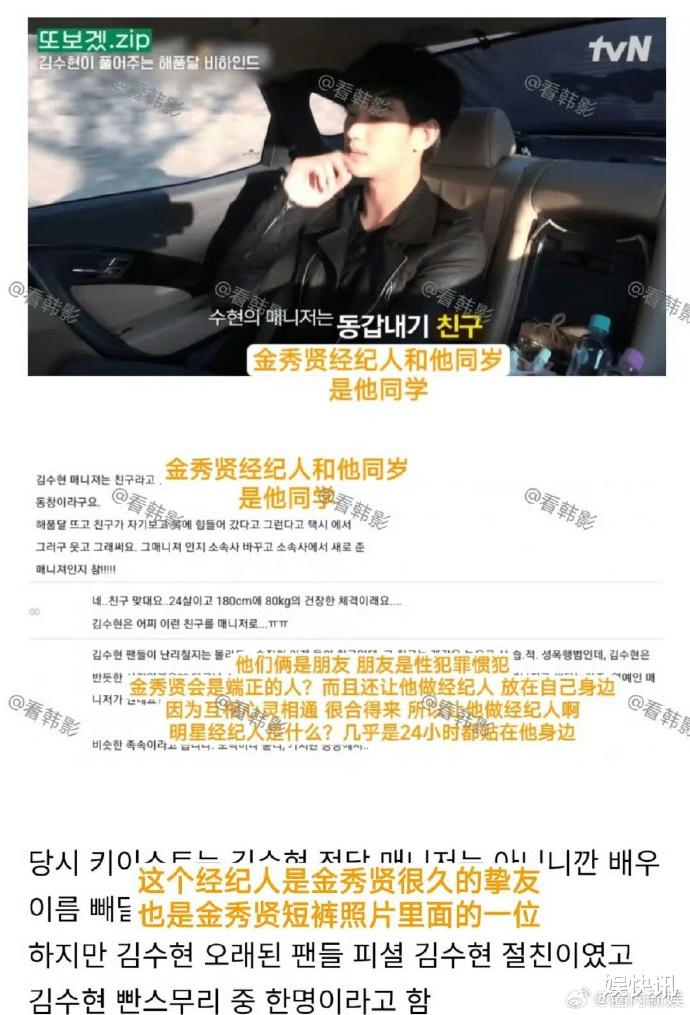 金秀贤可以说是双面人生。已故女星金赛纶家属控诉,其自2015年起与当时仅15岁的金赛纶维持六年地下恋情,并曝光两人2016年的贴脸亲吻照。尽管韩国当时性同意年龄为13岁,但12岁的年龄差与金赛纶的未成年身份,仍被舆论痛批为“萝莉养成”。更残忍的是,金秀贤公司被指在金赛纶因酒驾陷入赔偿危机时代付7亿韩元,随后翻脸追债,甚至屏蔽其电话。金赛纶的求饶短信中写道:“哥哥,请再给我时间……”,最终她在金秀贤生日当天选择轻生。网友:因为金秀贤公司涉嫌逼迫金赛纶进行陪酒才导致这一状况。这个情况需要核实。但是在金秀贤合作的女明星中以及在他公司的女明星接连出事情,网友发出的事情并不是空穴来风。
