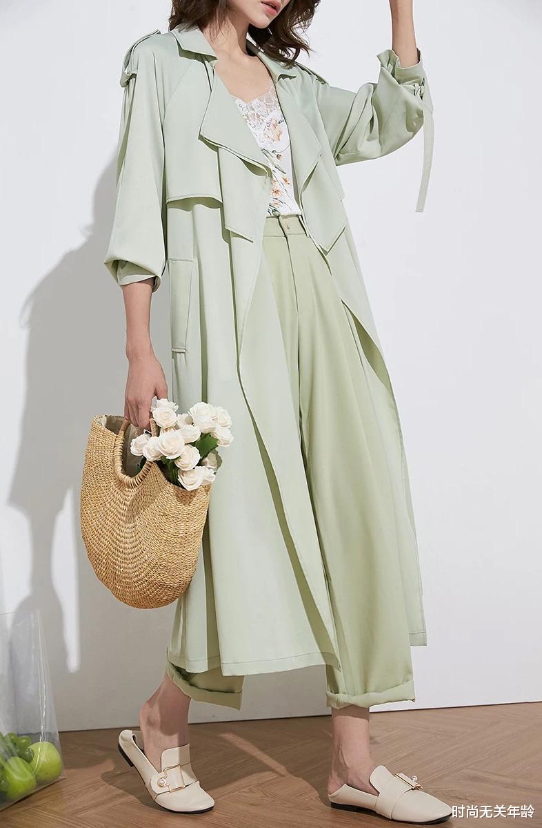 比如这件薄荷绿的薄款风衣,它不似秋冬风衣那般厚重,却依然保留了利落的剪裁。清新的薄荷绿与风衣的结合,为传统版型的风衣注入一丝灵动的生命力。