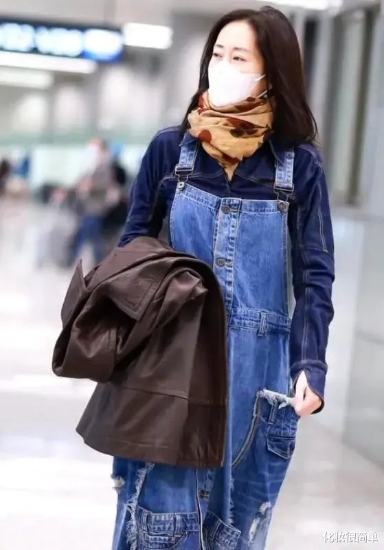 别以为这是什么随意搭配,这可是刘敏涛精心设计的时尚大戏!深蓝色的牛仔衬衫内搭,外面再来一件丹宁蓝的牛仔背带裙,这两种蓝色的巧妙碰撞,简直就是视觉的盛宴!看着看着,仿佛能听到蓝色在跳舞,让人不禁想高呼:刘敏涛,你这是要把牛仔单品玩出花来啊!