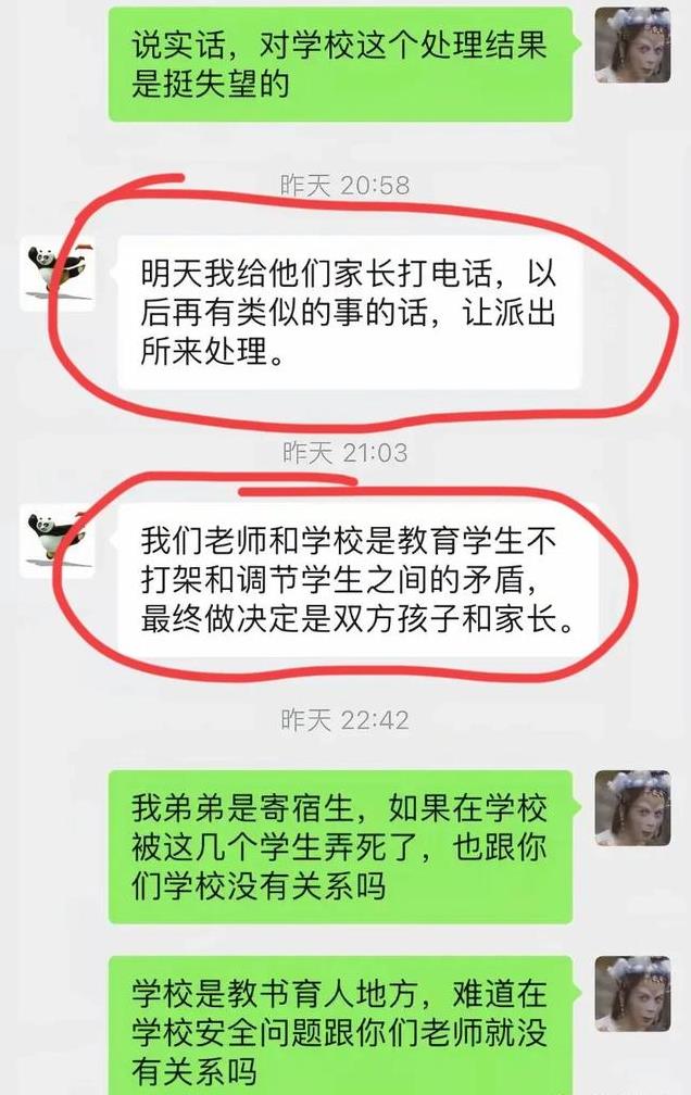 看聊天记录中显示,以后学生被“霸凌”直接派出所处理,意思是学校不管了吗?