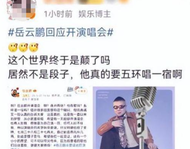 最近这两天关于他要开演唱会的事情闹得沸沸扬扬,5.27日岳云鹏在自己的社交平台账号上官宣了自己要开演唱会的消息,从发布的内容来看岳云鹏将在7.26和7.27举行两场演唱会,场馆定在了北京首都体育场。