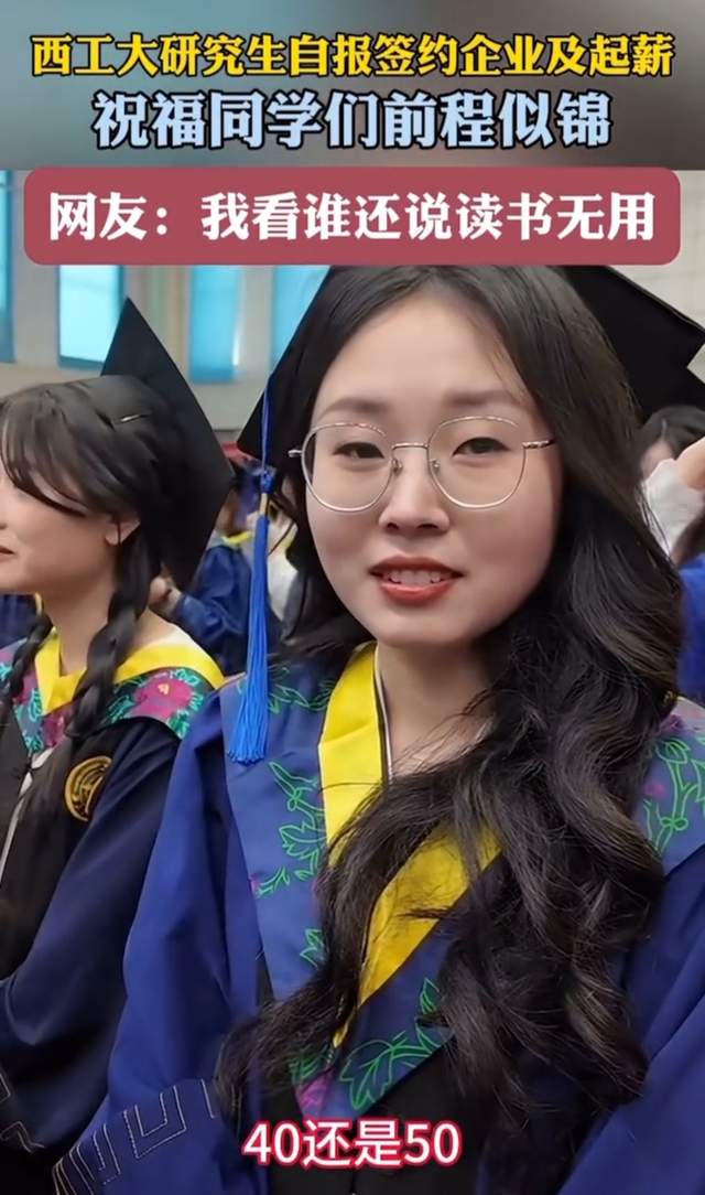 在社交媒体上,我看到了一个该校研究生毕业典礼的采访视频,是一位博主现场采访学生的签约企业和起薪,有一位女生签了比亚迪,另一位女生签了腾讯,年薪大概40W,还有一位男生签了蚂蚁集团,年薪大概50万。