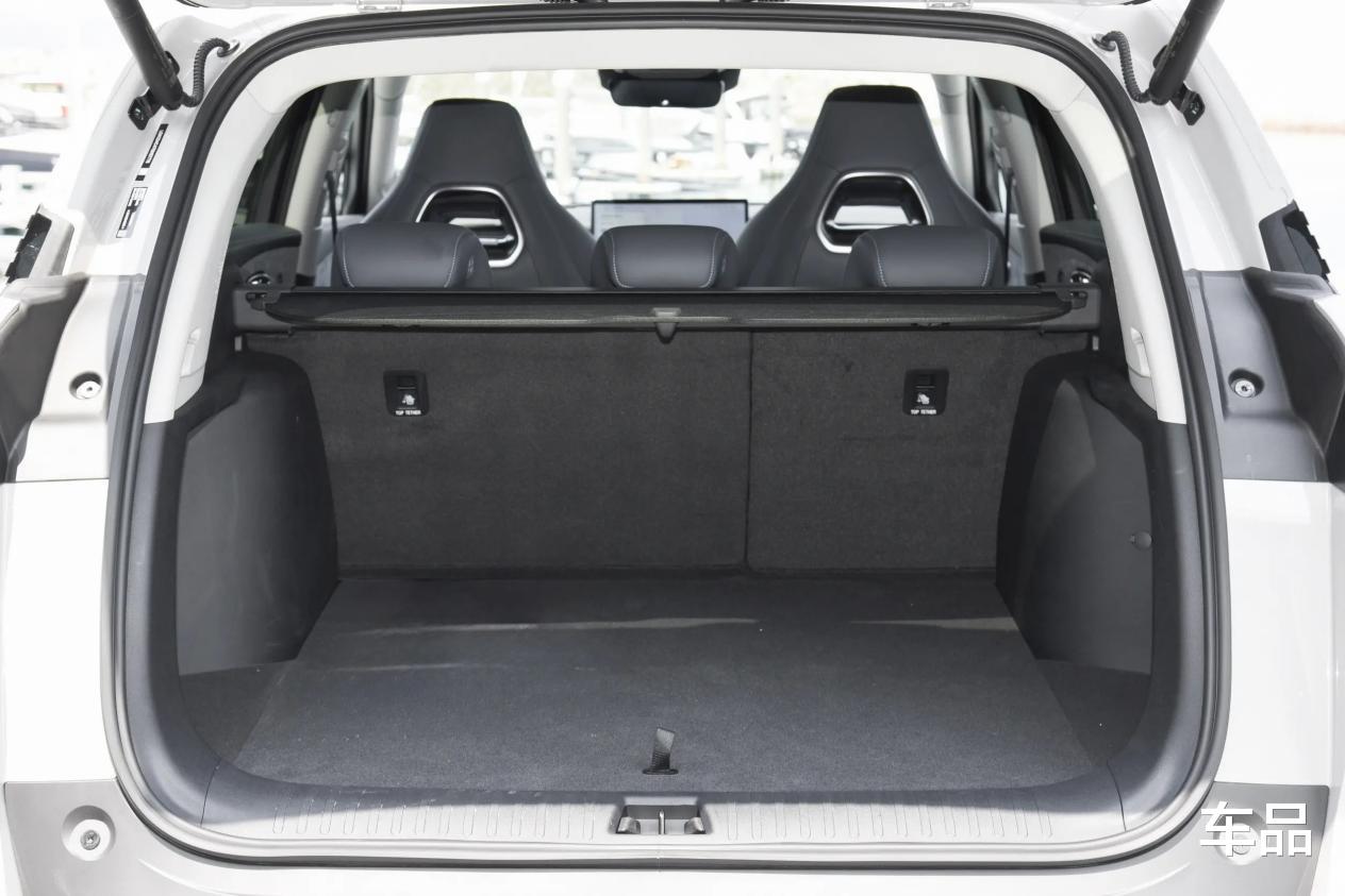 紧接着尺寸部分,海狮07 DM-i的长宽高分别为:4880/1920/1750mm,轴距为2820mm,小于理想L6,但毕竟是中大型SUV,加上全系还采用五座布局,所以空间方面也完全没有需要担心的地方。比如后排部分,可以看到纯平地板+宽厚且较长的坐垫,即使三位身高178cm的乘客乘坐也不会显得局促。另外海狮07 DM-i后备厢基础容积就达到了645L,并且还可以通过座椅放倒来扩展,实用性表现显然也挺不错。