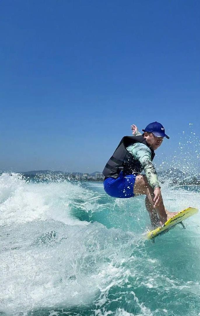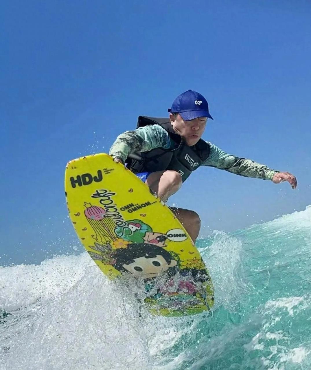 黄渤:50岁的“宝藏男孩”,乘风破浪,依旧闪耀!最近,娱乐圈再次被一位宝藏男孩刷屏——黄渤!先是被网友偶遇在广州街头,照片里的他,虽然略显发福,却笑容满面,亲和力爆棚,妥妥的邻家大叔范儿!这和他在舞台上光芒四射的样子完全不同,反差萌简直绝了!紧接着,画风一转,他又以另一种令人惊艳的姿态出现在大众视野!3月初,黄渤在社交平台上po出了他在澳门海上冲浪的照片,瞬间引爆网络!照片中,他身姿矫健,仿佛与海浪融为一体,简直帅到没朋友!谁能想到,这可是位年过半百的大叔啊!这状态,这身材,说是20多岁的小鲜肉也有人信吧?!冲浪时的他,身穿黑色救生衣搭配迷彩长袖,再戴上一顶蓝色帽子,这穿搭,简直是时尚弄潮儿本潮儿!这哪里是50岁大叔,分明是活力四射的阳光型男!